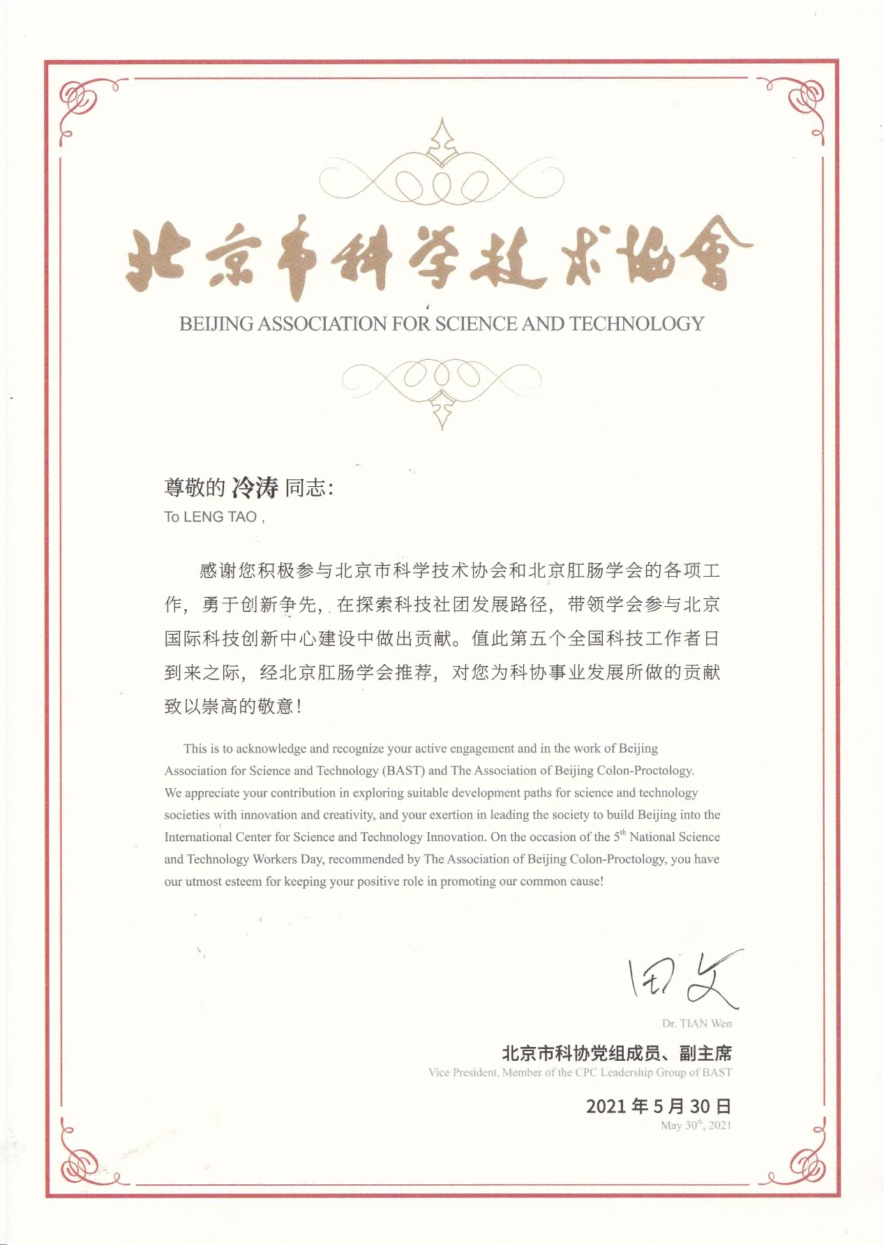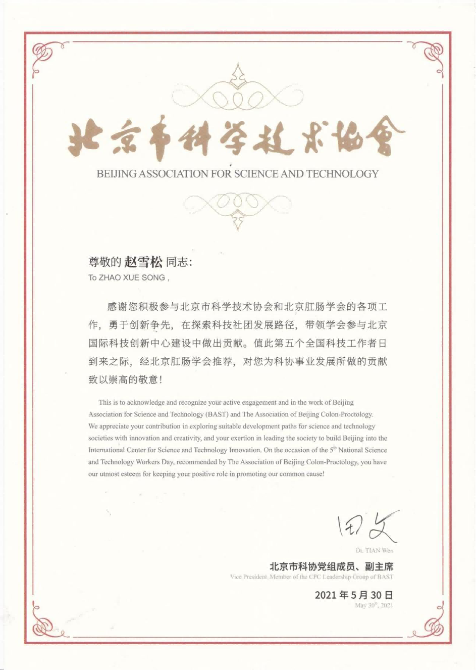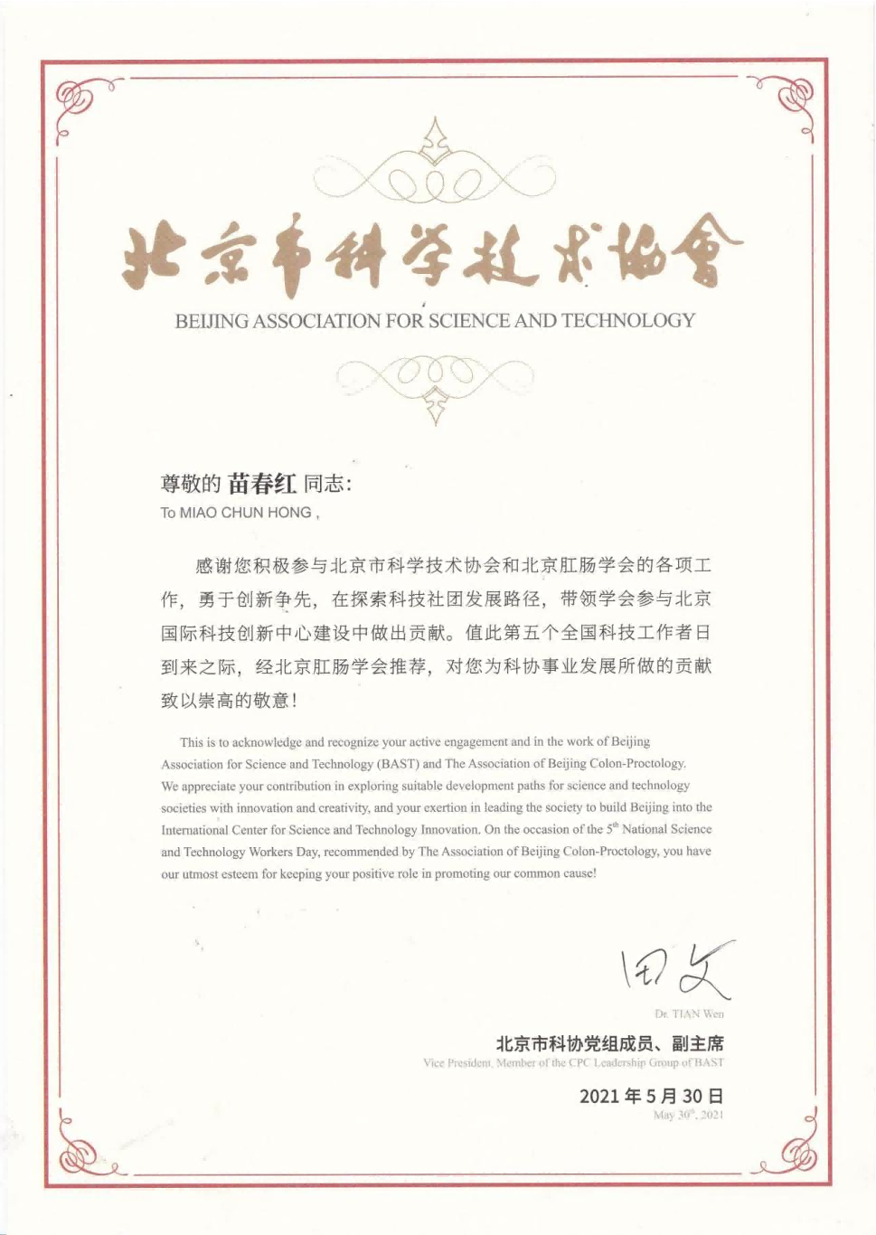 北京肛肠学会“全民肛肠健康科普”活动荣获市级嘉奖