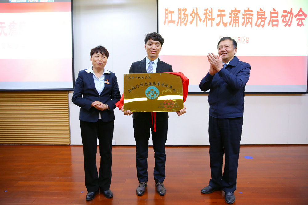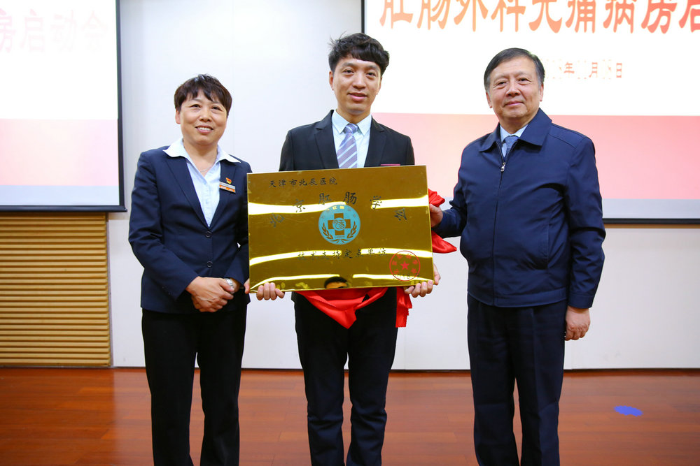 会议期间北京肛肠学会会长李东冰为天津市北辰医院分别授予北京肛肠学会技术支持单位和无痛病房建设单位的铜牌。预示着天津市北辰医院作为北京肛肠学会的技术支持单位,将在未来提供医疗技术支持,并共享北京肛肠学会京津冀一体化项目的多层资源。