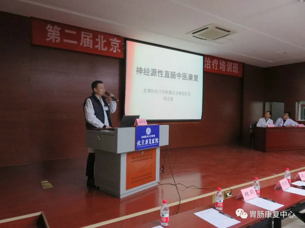 然后由中医康复中心赵宏波主任讲解了中医康复疗法在神经源性大便功能障碍中的应用,从中医中药、针灸、艾灸等多角度阐述了中医疗法在神经源性直肠的作用。
