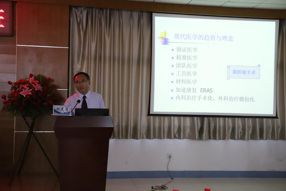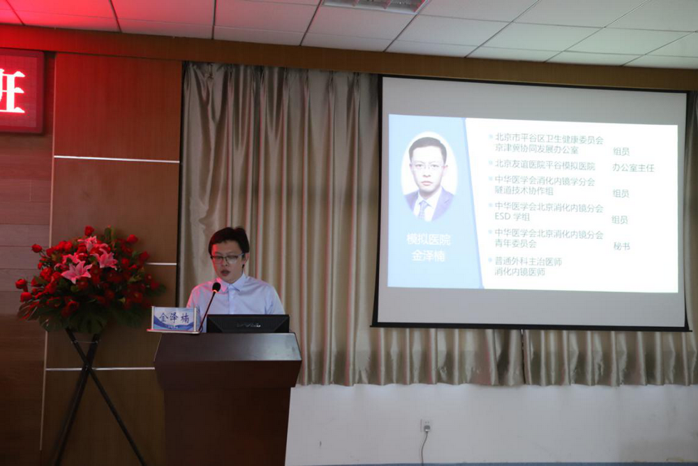北京市平谷区卫健委金大庆主任介绍了模拟医院的创立和发展以及目前的状况;分享了模拟医院成功的经验就是“坚持”,“一天哭三天乐五天急着回去做”的培训过程,模拟医院推动了临床医学的发展,指出模拟医院将建立医疗卫生的三大防控体系,即呼吸系统、心脑血管、消化系统三大体系;另外非常欢迎北京肛肠学会的大肠癌防治体系纳入其中,热烈祝贺“北京肛肠学会中心医院腹腔镜委员会”成立,也预祝手把手腔镜培训班的顺利召开。