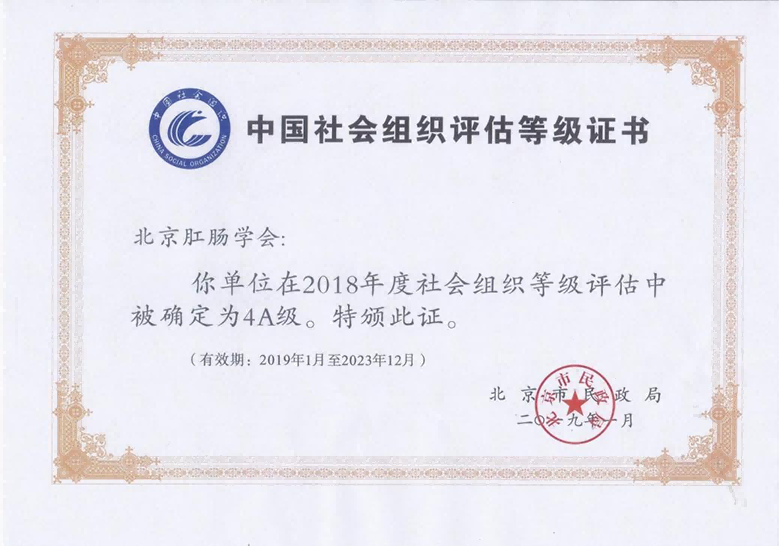 北京肛肠学会社团法人登记证书