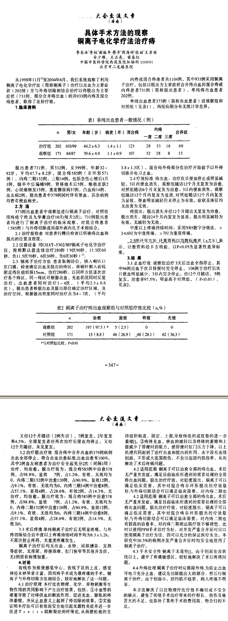 北京肛肠学会—pph术与铜离子电化学疗法治疗内痔及混合痔的临床应用