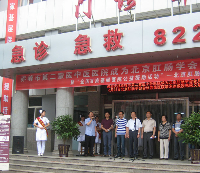 2015年6月25日上午,北京肛肠学会在 赤峰市第二蒙医中医医院举行援助单位启动仪式,北京肛肠学会会长李东冰、李瑞兰秘书长等学会专家出席了本次活动,王晓峰副院长主持了整个会议,出席此次启动仪式的还有赤峰市红山区卫生局领导,医院领导和院职工。