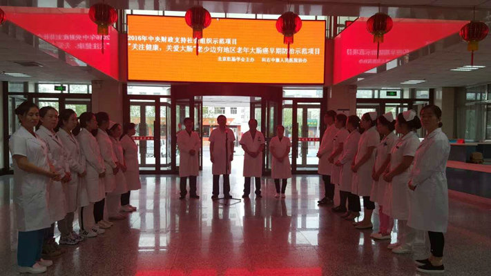 为响应政府服务百姓民生的号召, 贯彻“扶老、助残、救孤、济困、赈灾”的宗旨,落实《中国癌症预防与控制规划纲要》,积极拓展国务院卫生疾病精准扶贫精神,北京肛肠学会联合内蒙科尔沁右翼中旗人民医院在内蒙科尔沁地区开始实施中央财政支持的“关注健康,关爱大肠"老少边穷地区老年大肠癌早期防治公益示范项目。
