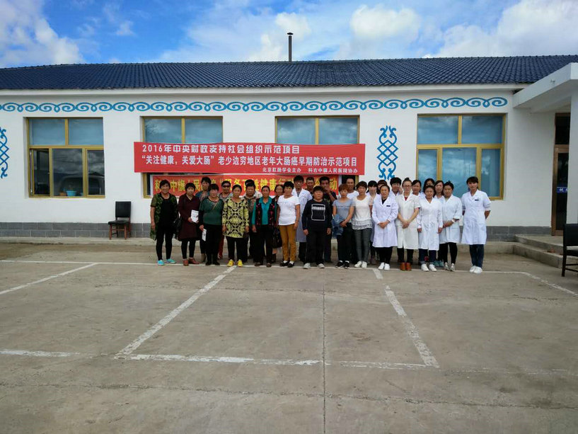 为了更好的服务老少边穷地区的人民健康,广泛、深入的推进北京肛肠学会承办的中央财政公益示范项目--“关注健康,关爱大肠"老少边穷地区老年大肠癌早期防治公益示范项目。2016年5月-12月北京肛肠学会联合内蒙古科尔沁科右中旗人民医院医院共同为当地的百姓送去健康服务和大肠癌早期预防的科普知识,同时为了更好的提高基层医生普查大肠癌的规范化操作技能,为当地基层医疗队伍建设提供了先进的规范化的技术支持。