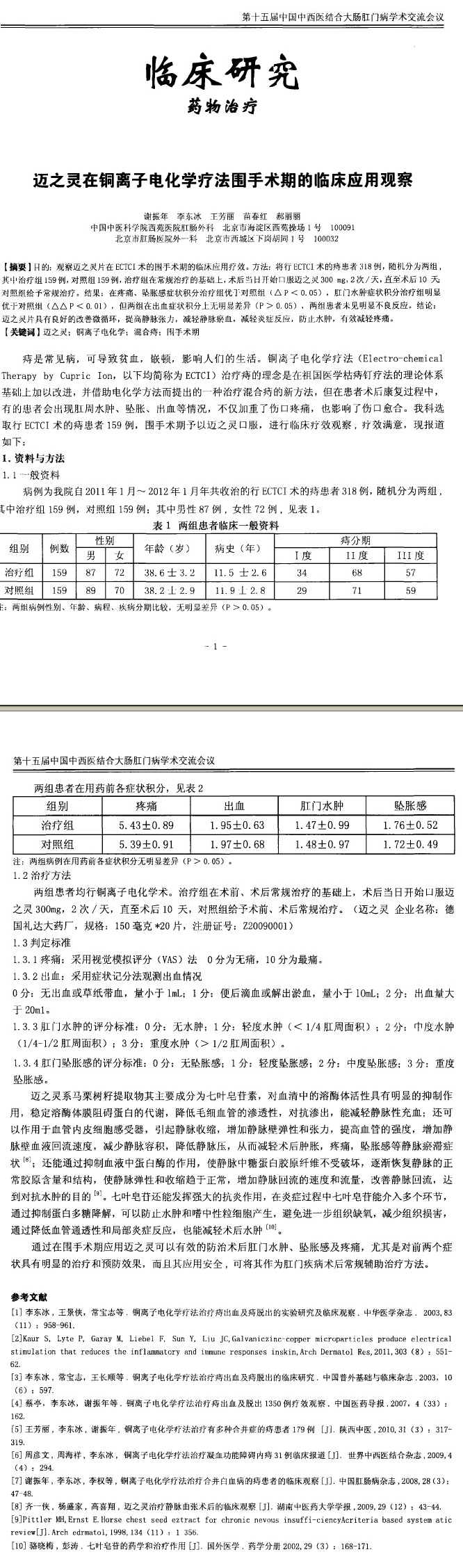 参会资料—铜离子电化学疗法结合外痔切除术治疗混合痔的临床观察