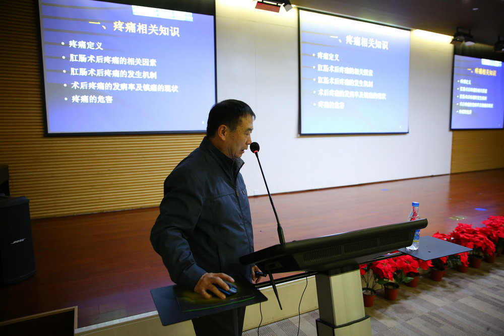 赵宝莲副院长和李东冰会长分别就无痛病房启动致辞。会议由北辰医院外科主任医师、博士、研究生导师,张大鹏主持。北京肛肠学会李东冰会长做微创微痛技术与快速康复的授课、李恒爽副会长做肛肠术后镇痛的临床实践的授课、谢振年秘书长就北京肛肠学会肛肠外科无痛病房规范化建设技术操作规范做了相关讲授;另外谢振年秘书长北京肛肠学会开展的相关扶持项目做了相关讲解。