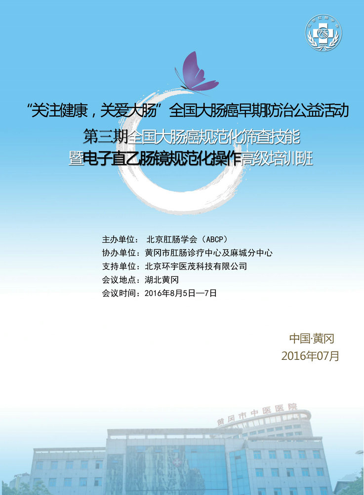 (第三期)全国大肠癌规范化筛查技能培训班将于8月5-7日在黄冈举办